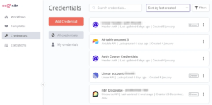 Credential is authentication information used to connect external applications and services. It includes API keys, usernames and passwords, OAuth tokens, etc. In n8n, credentials are centrally managed, and one credential can be reused by multiple nodes. It’s like a lock and a key: the credential is the key, and nodes need the correct key to access external systems.
